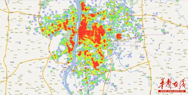 摩拜发布长沙城市出行热力图。