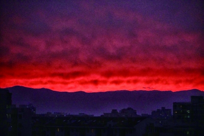 昨日傍晚降雨过后,北京的天空被火烧云染红,短短10分钟内,全北京天空中出现火烧云翻涌的美景,而这令人流连的美景也在不断“刷屏”朋友圈。据气象专家介绍,火烧云多出现在夏日雨后的傍晚。昨天京城在雨水灌溉之下,到了傍晚地面蒸发旺盛,大气中的上升气流作用较大,使火烧云的形状千变万化。