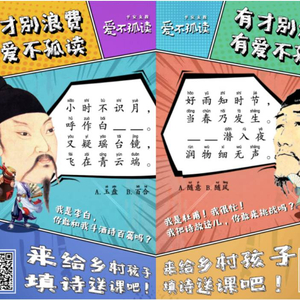 诗以咏志,歌以传情,诗的教育是爱的教育。在课程上线之前,平安支教行动准备了一个小小的“填诗送课”线上公益闯关,代表李白、杜甫等著名诗人,准备向你发出挑战。孩子们能得到多少诗歌的“滋养”,还得由你的“修养”来决定。