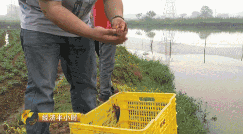 下午4点多钟,石角镇塘基村的王建清刚刚往饭店送完小龙虾赶回来,他把没有卖出去的小龙虾再放回到水塘里。