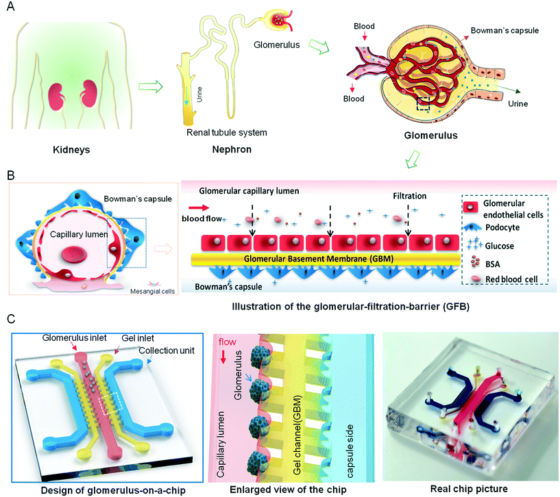 该工作中,研究人员从肾脏生理结构与功能特点出发,将前沿器官芯片技术与细胞生物学和材料学等方法相结合,通过多维分区的功能化芯片设计与构筑,创新性地构建了含有原代肾小球组织(肾小球内皮细胞和足细胞等)、基质成分和血管样机械流体的动态三维肾芯片系统,以期反映近生理的肾小球微环境和功能特征。在此基础上,研究人员进一步研究了高糖条件对肾小球屏障和滤过功能的影响。结果显示,高糖刺激可诱发肾小球屏障对白蛋白滤过增加,肾小球细胞氧化应激水平增强,并出现足细胞与肾小球内皮细胞的解离与迁移,在一定程度上反映了糖尿病肾病发生过程中早期肾损害的主要病理变化特点。