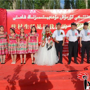 亚心网讯(通讯员 张慧勇)欢快的那格拉鼓、悦耳的唢呐、极具维吾尔族特色的马车……5月20日,新疆轮台县阳霞镇塔拉布拉克村一场极具特色的“访惠聚”驻村婚礼在村委会举行,各族干部群众200余人一同见证一对新人的民族婚礼。