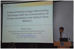在论坛报告阶段,10位海外青年学者先后结合自己的研究作了精彩的学术报告。这些学者虽然年龄都不满40岁,但已在各自的研究领域崭露头角。来自美国莱特州立大学的杨自丰助理教授介绍了他结合互相关和光流两种方法的长处,发展了一种全新的复杂流体检测技术上的创新性工作。来自日本三重大学的李庆安博士带来了他在直叶片垂直轴风力发电领域的最新研究进展。来自香港理工大学的费成巍博士介绍了他应用多特征熵距离方法进行滚动轴承故障检测的工作。来自奥地利自然资源与生命科学大学的万琳博士介绍了她在超高性能混凝土、预应力混凝土和无水火星混凝土的初期和长期性能方面的研究成果。来自香港科技大学的何伟博士介绍了他在层流分离流动经过翼面的全局线性失稳方面的研究工作。来自澳大利亚斯文本科技大学的项新梅博士展示了以薄壁管和三浦折叠为芯的新型三明治结构的优越机械性能。来自澳大利亚悉尼大学的付昆昆博士介绍了他在航空复合材料损伤破坏行为方面的研究成果。来自美国密歇根大学的方虹斌博士介绍了折纸结构在超材料和机器蚯蚓方面的应用进展。来自德国卡尔斯鲁厄理工学院的杨银平博士展示了他在欠驱动机构的逆向动态模拟方面做的工作。来自香港科技大学的张凯博士用扩散模型和相场模型研究解释了锂离子电池中纳米线的锂化屈曲行为。