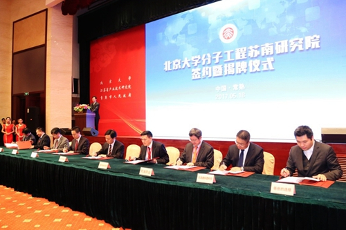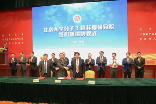 2017年5月17日至18日,北京大学校长林建华率团访问江苏省并出席北京大学分子工程苏南研究院签约暨揭牌仪式。