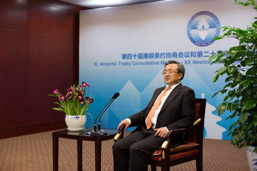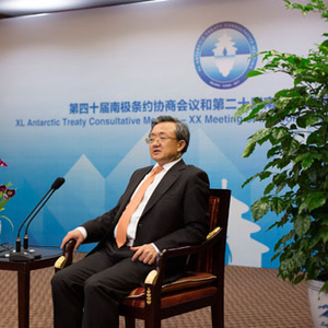 外交部副部长刘振民在第40届南极条约协商会议期间接受国内媒体联合采访