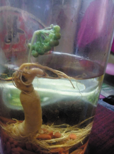 大连:人参泡酒好多年 突然长出绿叶来(图)