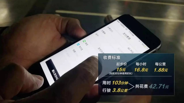 由于赶上下班高峰路况拥堵,这一次体验我们一共用时103分钟,行驶了3.8公里,花费一共是42.71元。