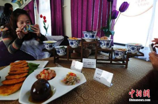 资料图。甘肃首趟“敦煌号”旅游列车从兰州始发,列车上上演的敦煌舞蹈“飞天”吸引旅客,满足游客个性化需求。 杨艳敏 摄