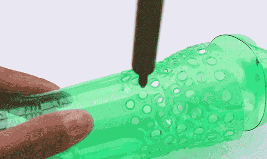 在瓶子上密密麻麻地戳上小孔