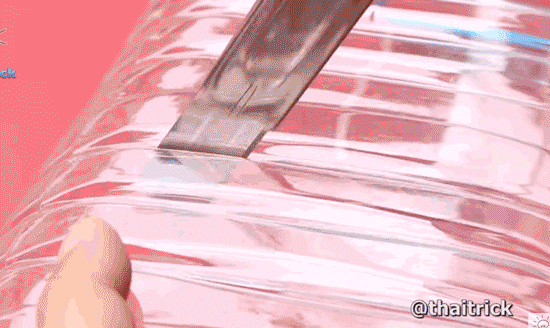 在大塑料瓶的瓶身剪出一道道的卡口