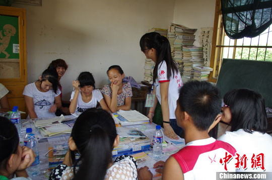 资料图:高校学子江西偏远山村支教,与留守儿童共度暑假。占灯辉 摄