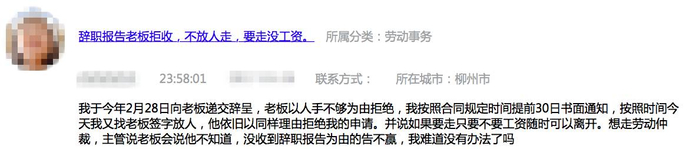 我于2017年2月28日向老板递交辞呈,老板以人手不够为由拒绝,我按照合同规定时间提前30日书面通知,按照时间今天我又找老板签字放人,他依旧以同样理由拒绝我的申请。并说如果要走只要不要工资随时可以离开。想走劳动仲裁,主管说老板会说他不知道,没收到辞职报告为由而告不赢,我难道没有办法了吗?