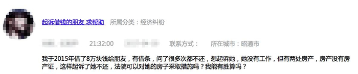 我于2015年借了8万块钱给朋友,有借条,问了很多次都不还,想起诉她,她没有工作,但有两处房产,房产没有房产证,这样起诉了她不还,法院可以对她的房子采取措施吗?我能有胜算吗?A5: