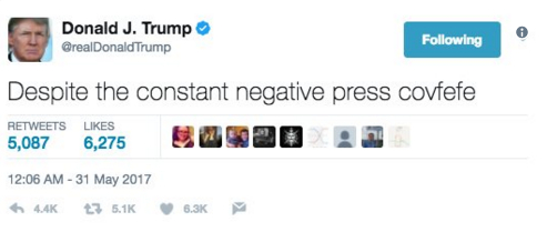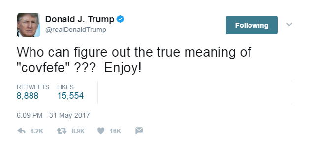 Covfefe,特朗普推特诡异拼词是个什么鬼?