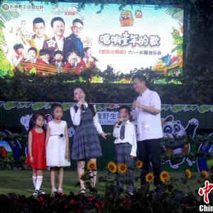 中新网广州6月1日电(王华 麦念萍)“六一”儿童节当天,著名主持人朱军带着电视节目《音乐大师课》里的音乐少年一起来到广州长隆,唱起“十大童年金曲”。
