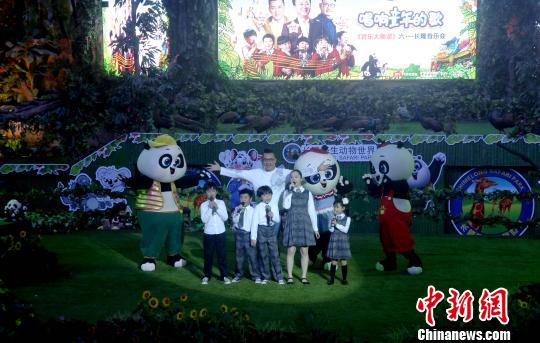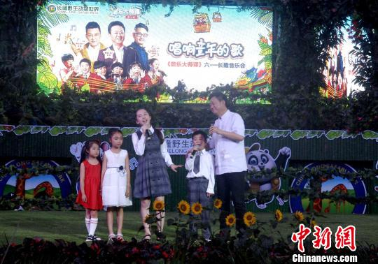 “六一”儿童节当天,著名主持人朱军带着电视节目《音乐大师课》里的音乐少年一起来到广州长隆,唱起“十大童年金曲”。 王华 摄