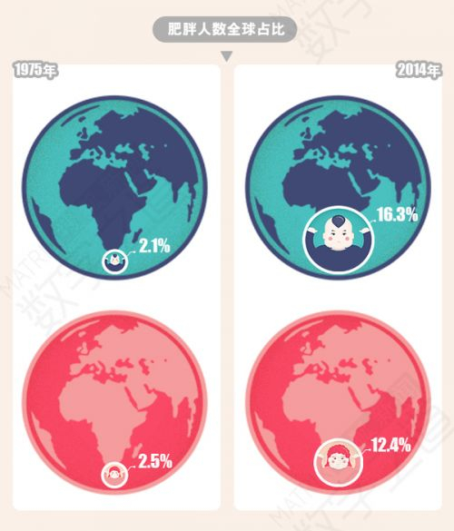 全球肥胖人数从1975年1亿多增加到2014年的6.41亿,中美两国分别以8960万和8780万位列第一和第二。当第一也是因为我们人多,中国有13.7亿人,美国仅有3.2亿,按比例算还是美国赢。