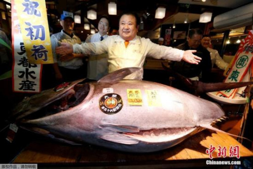据报道,该公司自2012年的首次拍卖以来,持续6年以最高价拍下蓝鳍金枪鱼。今年也拍出7420万日元(约合人民币455万元)的成交价。