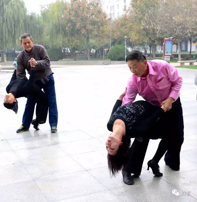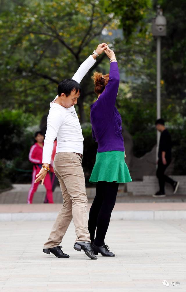 △ 2016年10月9日,郑州人民公园,一男子在与舞伴切磋舞艺。