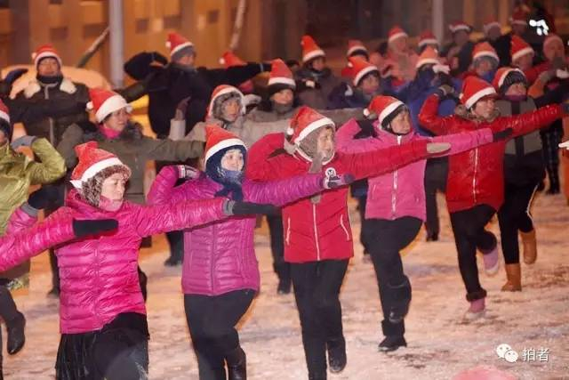 △ 2016年12月25日,黑河,大妈大叔们通过跳广场舞锻炼身体。