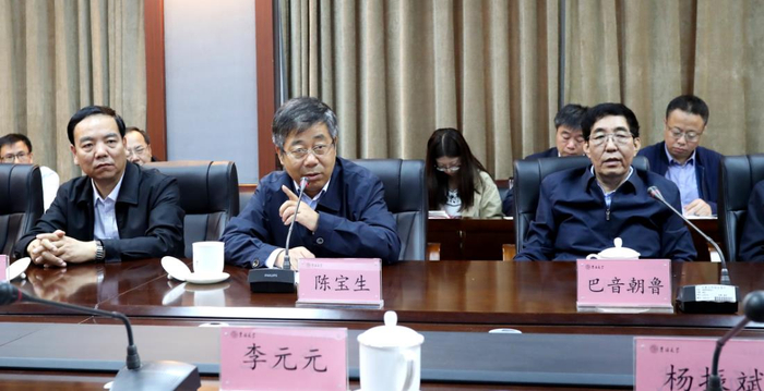 在地质宫五楼会议室,陈宝生、巴音朝鲁看望了黄大年教授科研团队成员以及李四光班学生代表,听取了学院原院长刘财教授对黄大年团队工作的介绍和对黄大年精神的理解,李四光班学生代表周文月同学怀着十分崇敬的心情畅谈了黄大年教授对同学们的言传身教以及在大年精神鼓舞下刻苦学习的感想和体会。