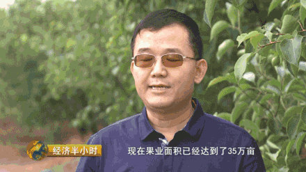 山西省运城市盐湖区果业发展中心主任靳高峰&运城市盐湖区泓芝驿镇党委书记苏建陇:现在果业面积已经达到了35万亩,总产量达到70万吨,总产值达到20个亿,农民人均果业收入达到5000元,占到农民人均可支配收入的50%以上。目前咱们全镇耕地面积是49000亩,现在仅酥梨的面积已经近40000亩。