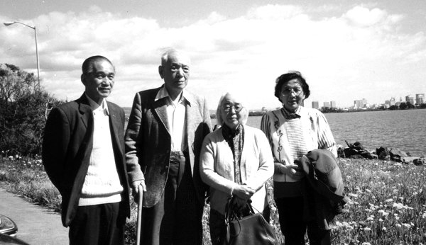 资料图片:陈省身夫妇与严志达夫妇合影(左起严志达、 陈省身、陈省身夫人郑士宁、严志达夫人于德求)