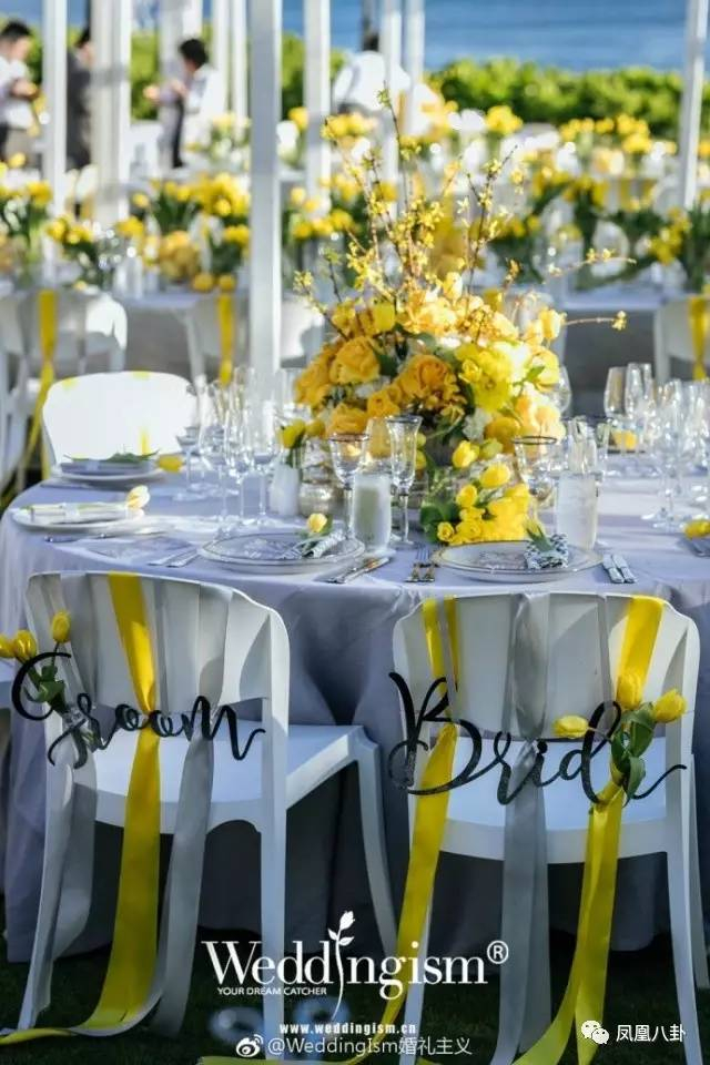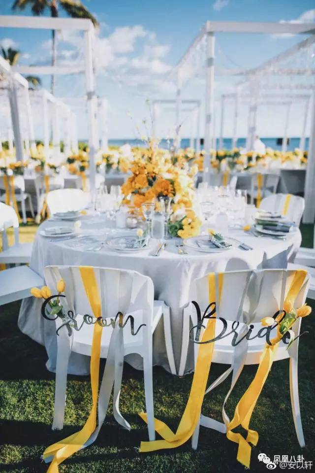 看得出来整场都是白色+黄色的主色调,非常有夏日风情哦~
