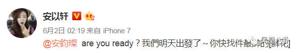 6月2日,安以轩在微博艾特已故好友安钧璨,说自己明天就要出发去夏威夷结婚了!