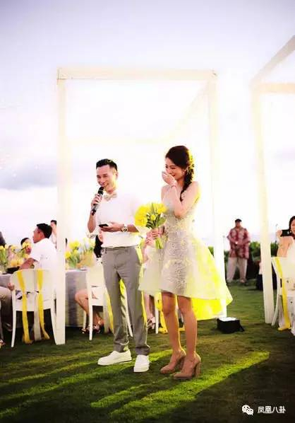 致词时说:“其实这几天也吃不好,睡不好,忙昏了4个月,其实最重要的重心是在于每一个来宾,我丈夫也希望大家吃开心、玩开心,也希望这些陈设可以让你们留下深刻的印象,然后可能没办法好好照顾到每一个人,有任何不周的地方请多包涵,希望你们好好享受这两天,这样才能好好的休息,今天我们可能不能喝太多,但你们尽兴就好,因为明天还有一天的时间,谢谢大家。”