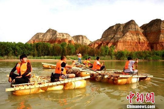 第七届敦煌行?丝绸之路国际旅游节将于6月19日至7月20日在永靖县举办,羊皮筏子渡河漂流就是为此次活动做准备。 郭红 摄