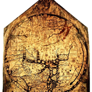 1300年《赫里福德世界地图》,至今保存于英格兰赫里福德教堂,为中世纪最大最详细的世界地图。