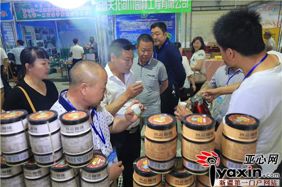 5月26日,新疆“兵地融合”农产品展销会现场,参观者在展位前驻足 张荣耀摄