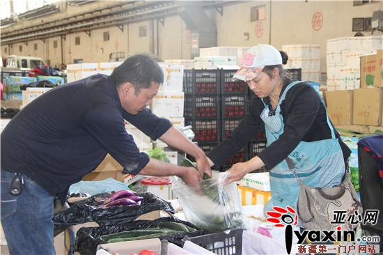 顾客在九鼎克拉玛依农产品批发市场选购蔬果 薛兆斌摄