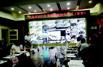 另外,青岛新建的智能音视频监考指挥系统今年首次使用,既能实时指挥、监考,又能与各考点互动,以文字、音频、视频的形式,与各级指挥中心联系,将考点物理考场、逻辑考场、考生信息相互关联,支持信息快速检索。考务指挥中心和考点视频监考员发现疑似作弊考生可直接定位到考生所在考点、考场及考生信息,并可自动记录考生作弊类型和疑似作弊过程前后三分钟考场图像,作为查处证据保留。