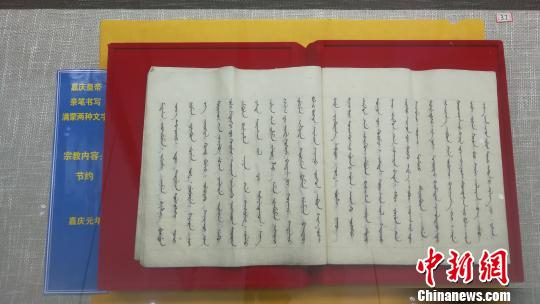 中新网呼和浩特6月10日电 (尚虹波 乌瑶)10日,中国首家蒙古文字文献博物馆在内蒙古自治区和林格尔新区南山文化产业园揭牌成立,包括清嘉庆皇帝满蒙文亲笔手书在内的360余件蒙古文献档案、经文等在这里得以展示。