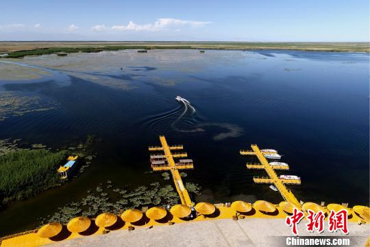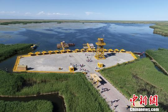 航拍新疆博斯腾湖阿洪口(莲海世界)景区。 年磊 摄