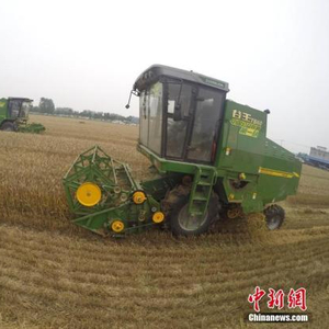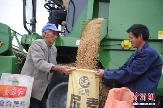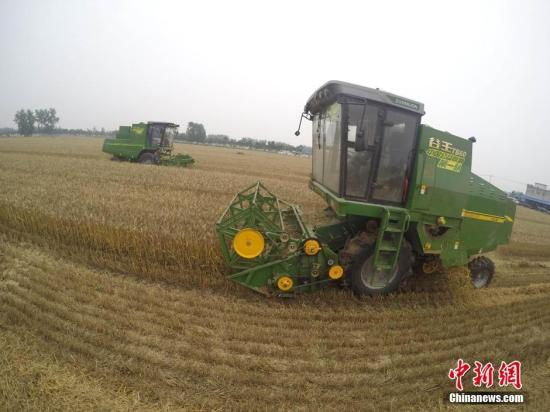 资料图:2016年6月3日,爱心公益收割队免费为困难农户抢收小麦,确保夏粮颗粒归仓。中新社记者 张娅子 摄