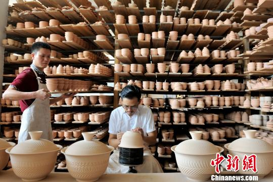 “这一特色产品也让跳刀茶具走俏市场,产值不断得到提高。”张金溪告诉记者,“陶艺创新是学无止境的,只有不断地学习,探索新发现,研发新产品,才能将陶瓷技艺永续传承再发展。”