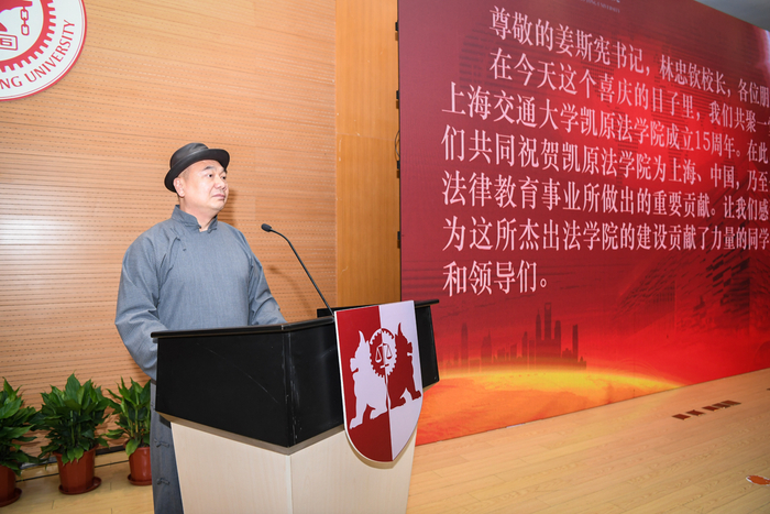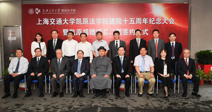6月10日,上海交通大学凯原法学院建院15周年纪念大会暨凯原捐赠项目二期签约仪式在徐汇校区廖凯原法学楼举行。美国廖凯原基金会主席廖凯原,上海市人大常委会副主任、上海交通大学党委书记姜斯宪,上海交通大学校长、党委副书记林忠钦院士,中国政法大学原校长陈光中,包括浦东新区区委常委、副区长、上海自贸区管委会副主任姬兆亮,静安区委常委、宣传部长沈大明,青浦区副区长王凌宇,上海市高院副院长、政治部主任郭伟清,上海市检察院副院长王光贤在内的部分在沪法学院历任院领导,上海交通大学党委常委、副校长张安胜,校党委副书记、纪委书记胡近,原副校长郑成良,特聘教授徐向华,清华大学法学院院长申卫星,凯原法学院院长季卫东,及部分校部机关、兄弟学院领导、校友代表,法学院教职工和学生代表等参加了纪念大会。会议由凯原法学院党委书记汪后继主持。