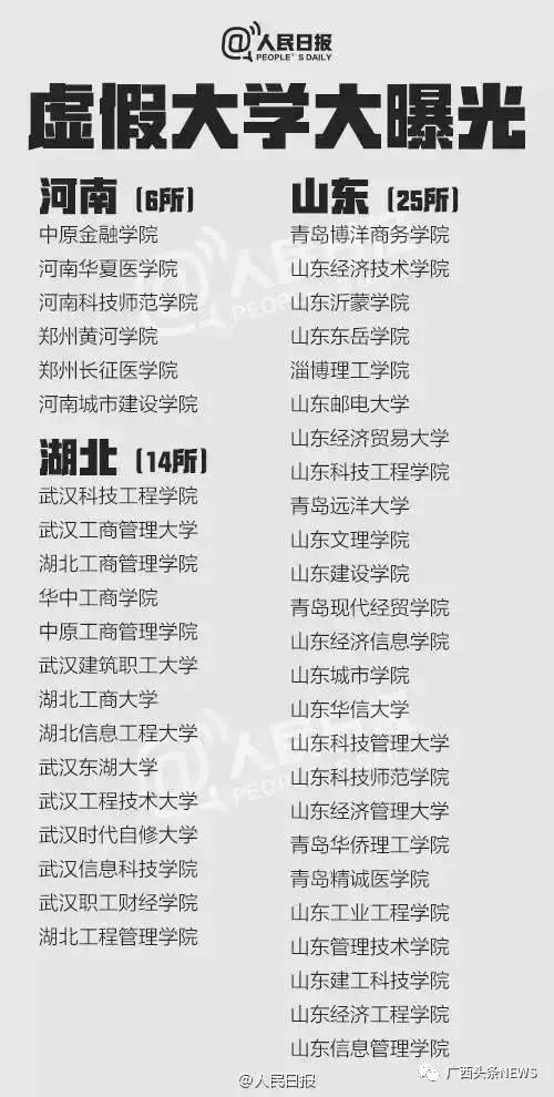 高考已经结束了,考生和家长们也开始准备填报志愿了,你选好目标大学了吗?但有件事千万要当心,教育部权威发布的正规高校名单以外,还有381所“野鸡大学”,广西就有3所!千万别被被骗。