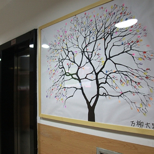 2017年6月14日,由万柳学区师生代表集体创作的“万柳大家庭”手指画作完成并张贴,这标志着万柳学区学生公寓二区一层的“大家空间”学生互动交流区已全部完成。建筑与景观设计学院、万柳学生联合会、万柳师生联合党支部和居住在二区的来自8个学院的近20位同学代表以及特房中心10余位工作人员先后参与了空间的设计改造过程。本次空间改造为特殊用房管理中心凝聚同学智慧、满足同学需求、激发员工活力、节约改造成本、师生共建品质校园积累了诸多宝贵经验。