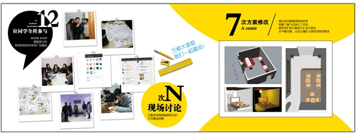 同学参与第二是多部门员工积极配合。因为空间零散,又经过消防通道、电梯通道等特殊场地,特房中心涉及改造的10个部门将整个过程分成三块施工,根据同学们的所思所想,细化分工,大胆改造,在不影响同学通行、保证安全的前提下,一步一步将同学们的梦想变为现实。经过1080个小时的奋战,二区门厅终于旧貌换新颜,同学们的每个想法都在施工中被充分尊重并得到落实。