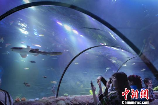据了解,重庆海洋探索中心共设有18个主题展区,图为:海洋馆内部。 钟欣 摄