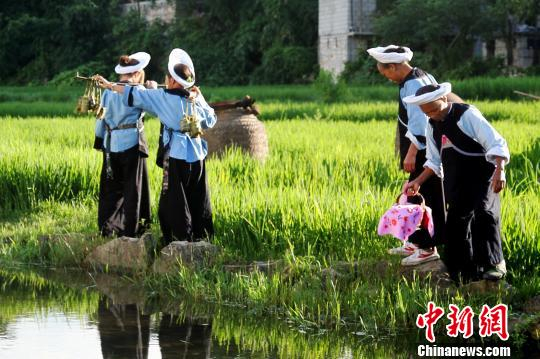 走进贞丰县者相镇新寨村,只见村民手把糯苗插满田,低头便见水中天。