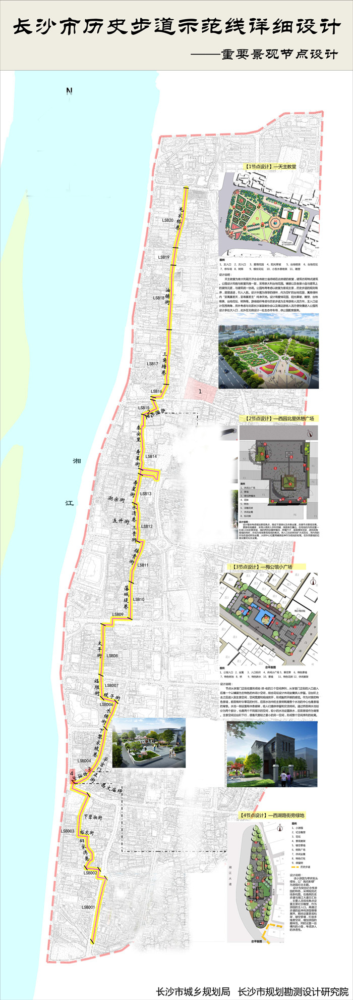 此次启动的示范线属于长沙市历史步道规划的一部分,长沙市历史步道范围包括西至湘江中路、东至芙蓉路、北至三一大道、南至白沙路的整个历史城区范围。规划形成“一圈、三环、多支线”的历史步道网络,串联历史文化街区、历史地段、主要历史资源点,构建网络化步道系统。