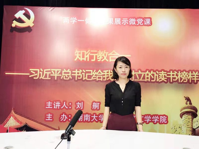 刘舸专门开设了“知、行、教合一:习近平给我们树立的读书榜样”微党课,解读习近平阅读观,微党课视频还报送教育部推广。随后,《习近平的阅读观》一文发表《湖南日报》理论版,文中阐述了习近平关于读书的好处、境界、方法等,《从治国理政视角解读习近平的读书观》等研究文章也在相关媒体发表。