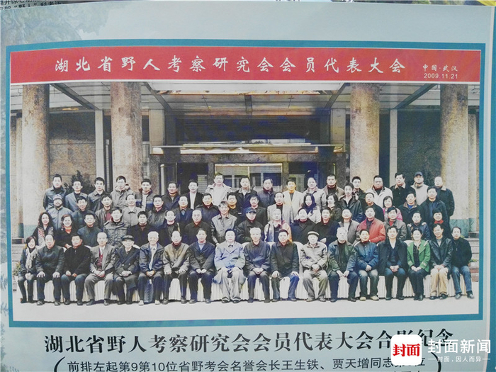 神农架“野人”的“发现和走红”,源于1974年的房县,一位名为殷洪发的生产队副队长自称上山砍藤条时,被“野人”抓了肩膀,出于自卫,他下意识地砍了“野人”一刀。殷洪发将此事报告了神农架林区政府领导,他的故事迅速被传至武汉、北京。于是,来自上述等地的专家进入神农架。图为湖北省野人考察研究会大会合影。