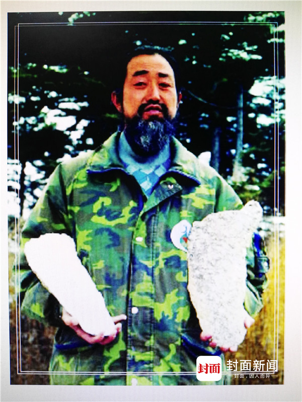 2017年6月13日,湖北省野人考察研究会会长王善才向封面新闻-华西都市报记者提供了神农架“野人”考察40年来的部分图片。图为考察志愿者张金星展示他灌制的野人脚印,他常年驻扎在神农架。