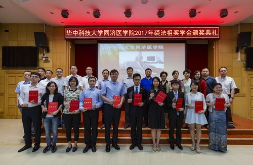 新闻网讯(通讯员 王绪武)6月14日下午, 2017年裘法祖奖学金颁奖典礼在同济医学院学术报告厅举行。校长丁烈云、副校长陈建国、同济医学院党委副书记邓静萍、同济医学院副院长鲁友明、胡华成,同济医学院综合办公室、医学学工处、医学研究生处主要负责人、各院系分管学生工作负责人、全体资助辅导员老师参加了活动。